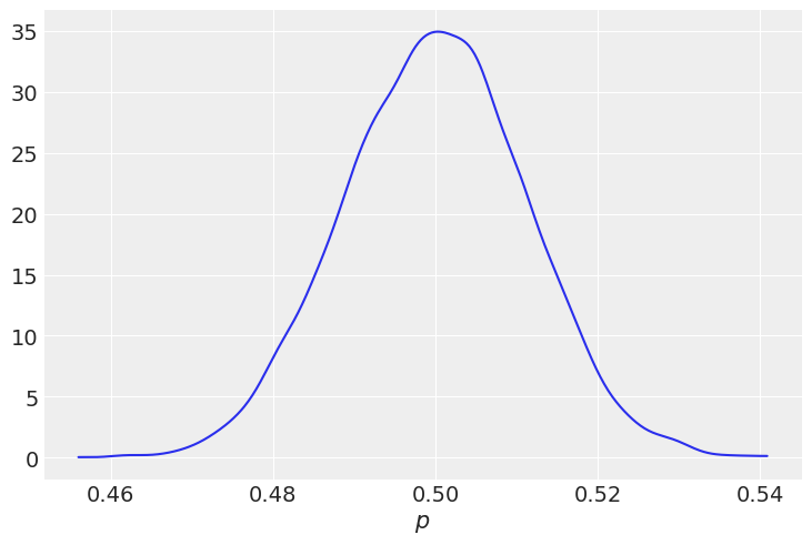 az.plot_kde(p_tails, label"$p$")