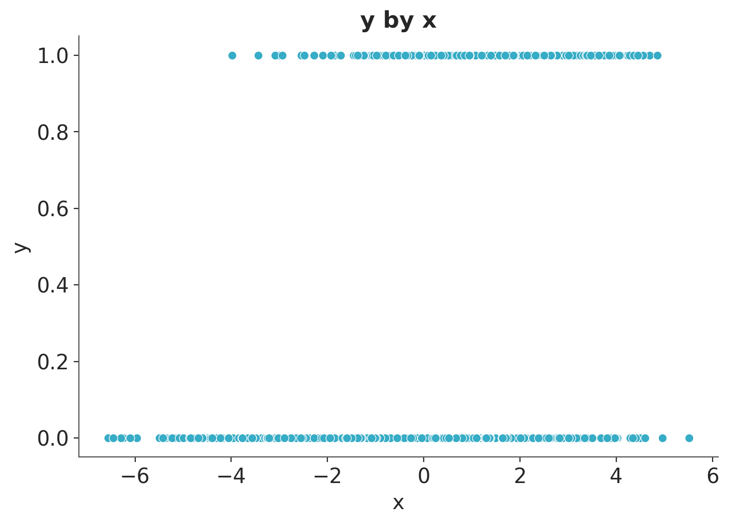 ax.set(xlabel="x", ylabel="y", title="y by x");