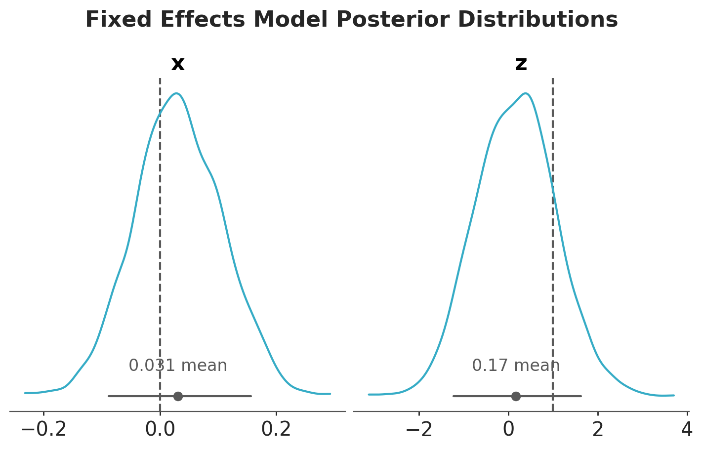 Let’s look at the posterior distributions of the parameters of the fixed effects model.