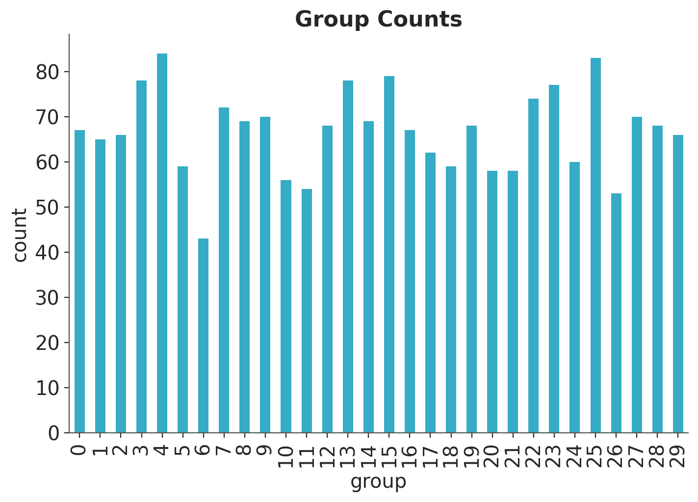 Let’s look into the data and reproduce the plots from the video. First, we look at the group counts.