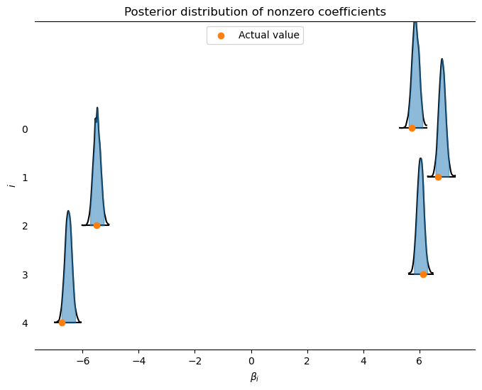 ax.legend(loc"Posterior distribution of nonzero coefficients"); ax.set_title(