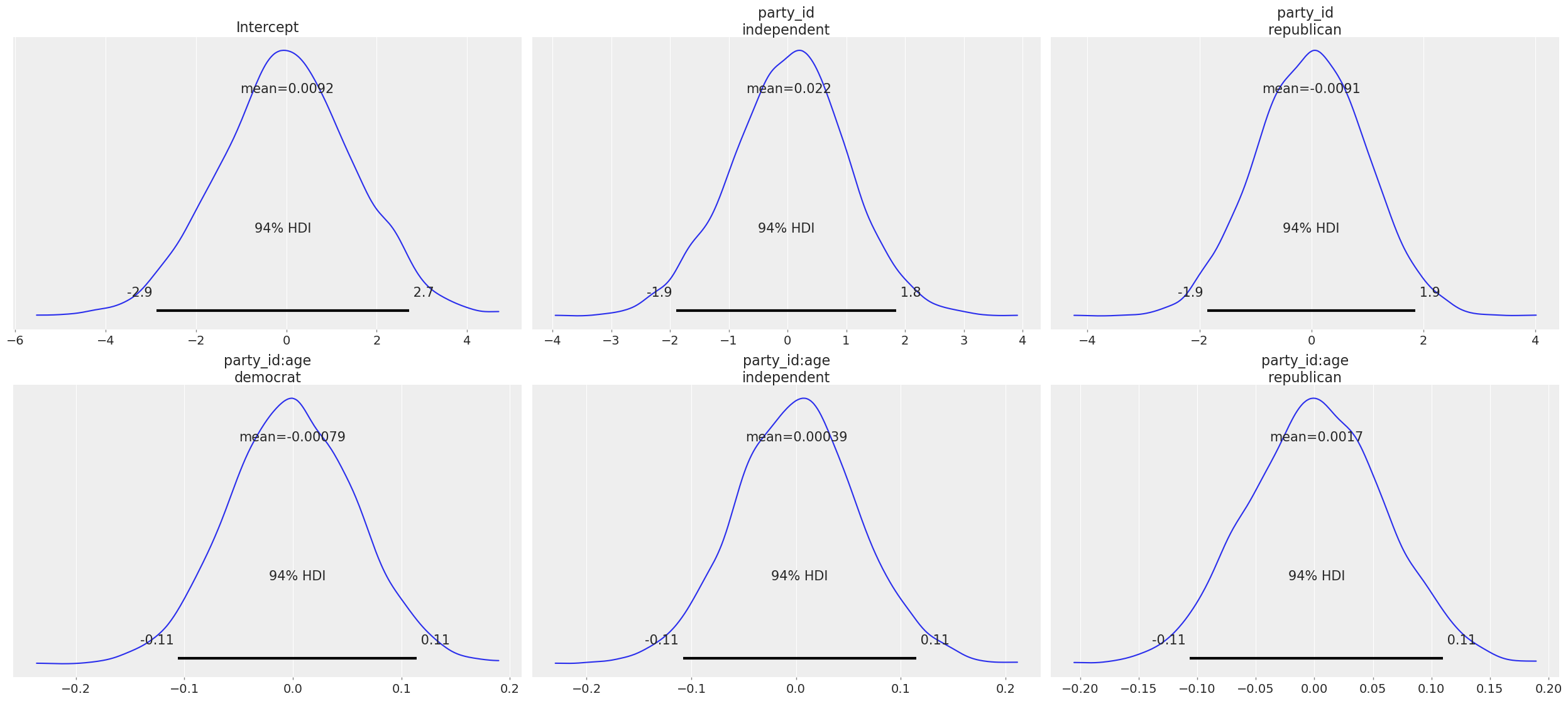 parties = [clinton_fitted.posterior["party_id:age"].sel({"party_id:age_dim":party}) for party in parties] dem, ind, rep