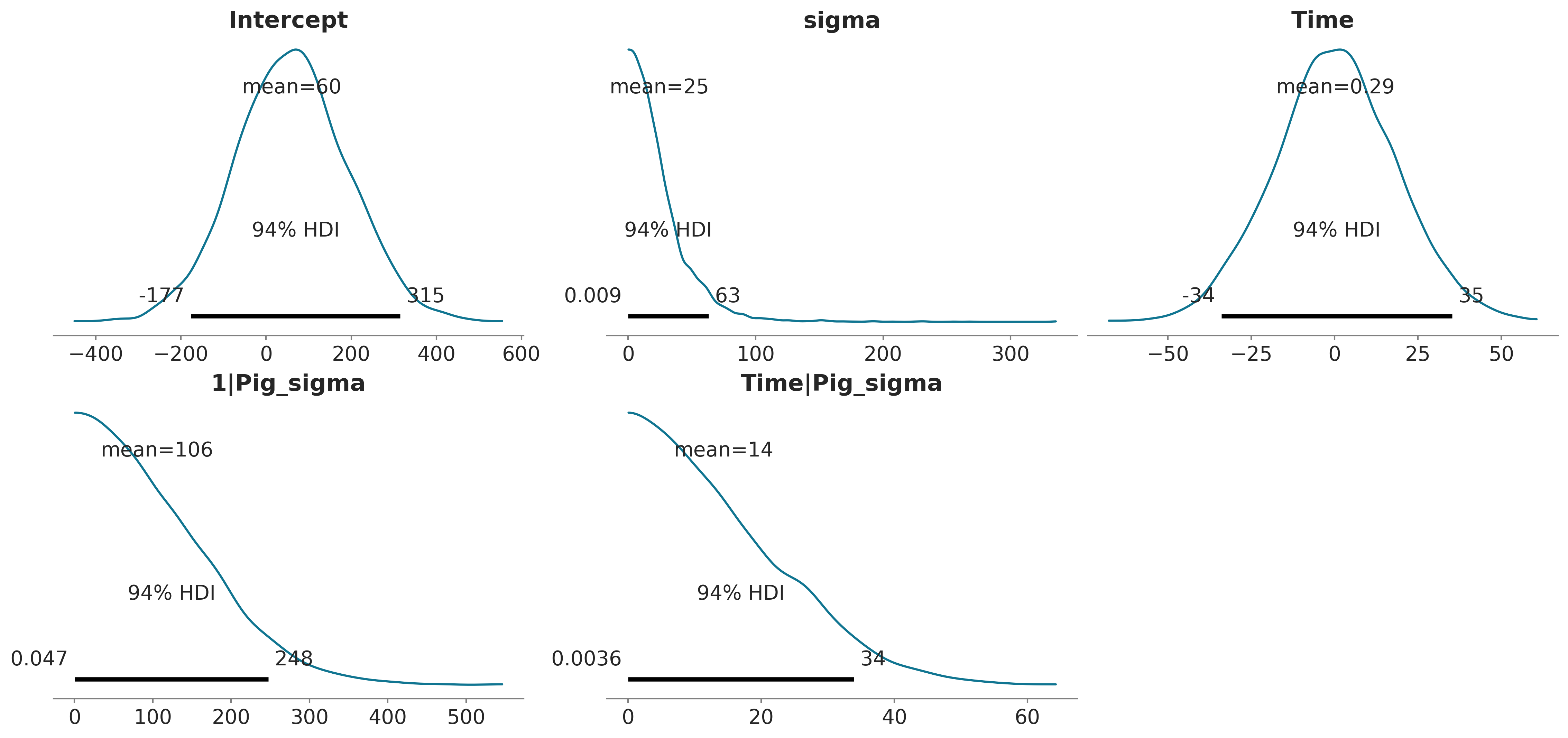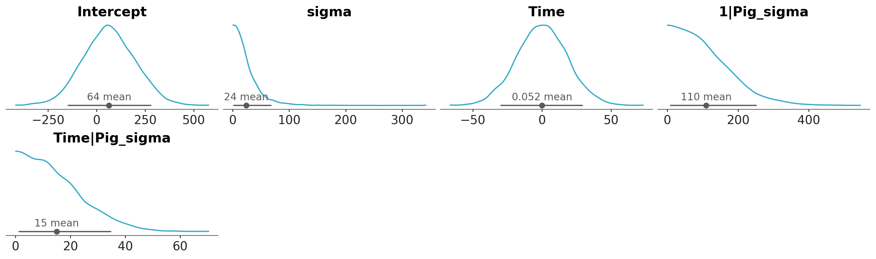 var_names=["Intercept", "Time", "1|Pig_sigma", "Time|Pig_sigma", "sigma"],