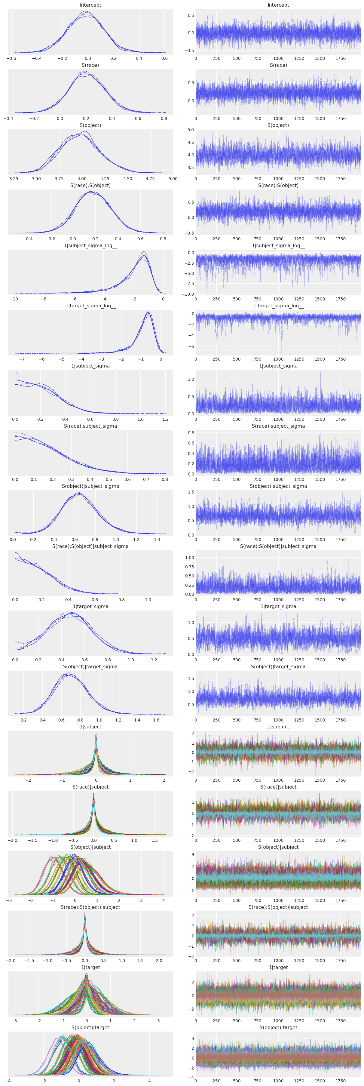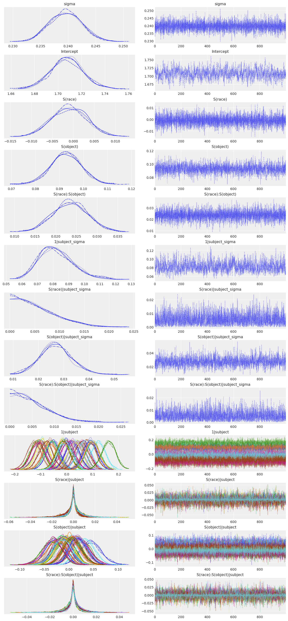 NUTS: [sigma, Intercept, S(race), S(object), S(race):S(object), 1|subject_sigma, 1|subject_offset, S(race)|subject_sigma, S(race)|subject_offset, S(object)|subject_sigma, S(object)|subject_offset, S(race):S(object)|subject_sigma, S(race):S(object)|subject_offset]