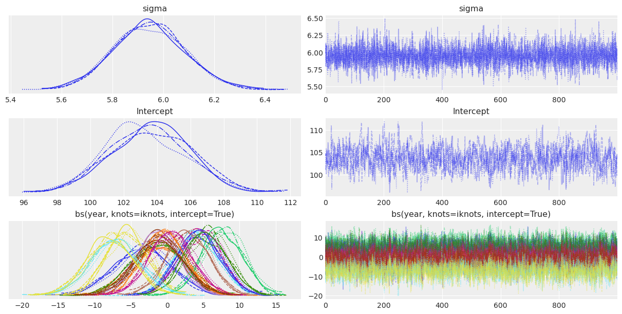 bs(year, knots=iknots)[14] | -6.078 | 3.111 | -11.481 | 0.258 | 0.074 | 0.043 | 1770.0 | 2634.0 | 1.0 |