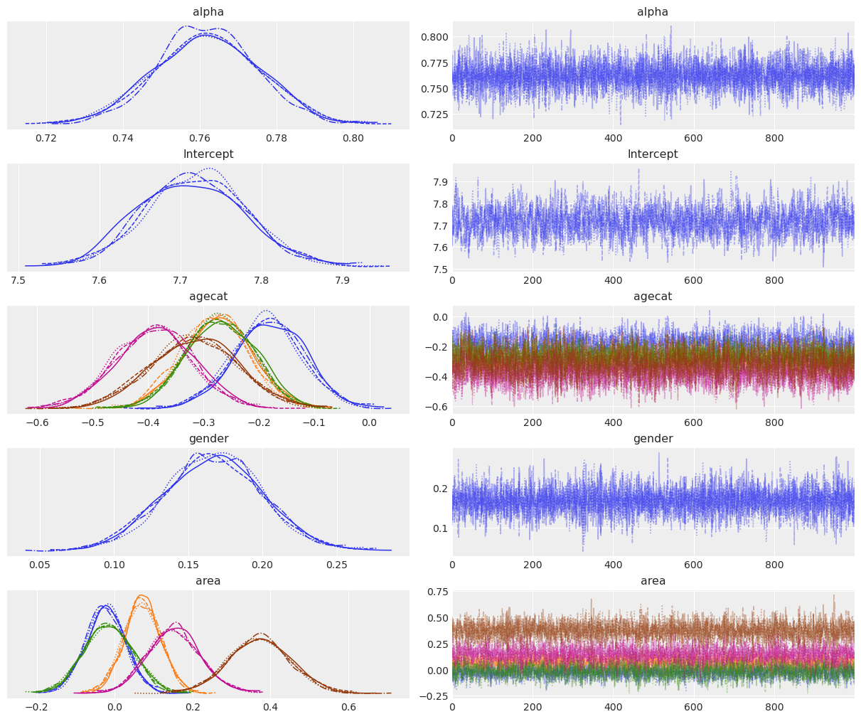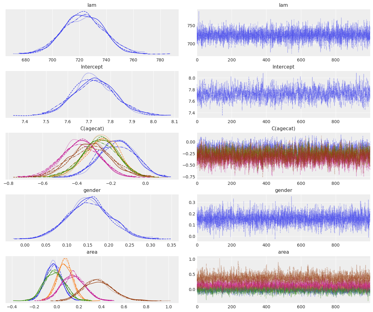 NUTS: [lam, Intercept, C(agecat), gender, area]
