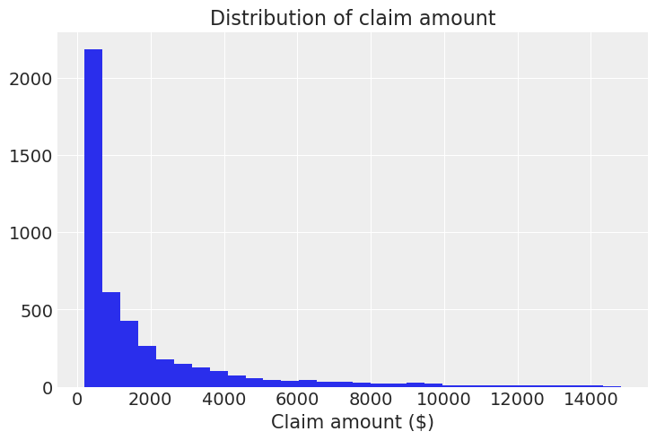 plt.title("Claim amount ($)"); plt.xlabel(